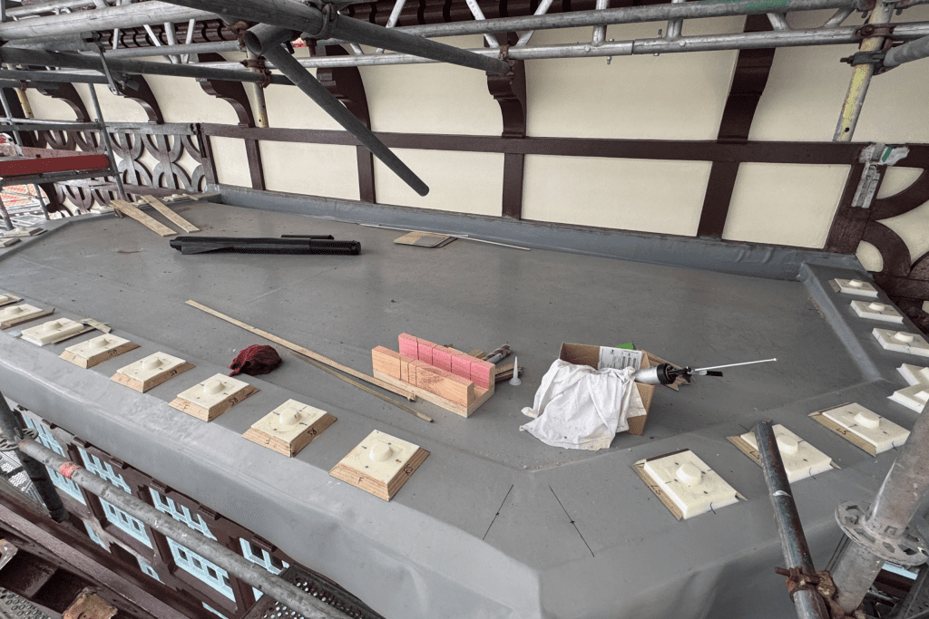 - Rebuilding the Tudor-styled architecture roof to match heritage appearance.